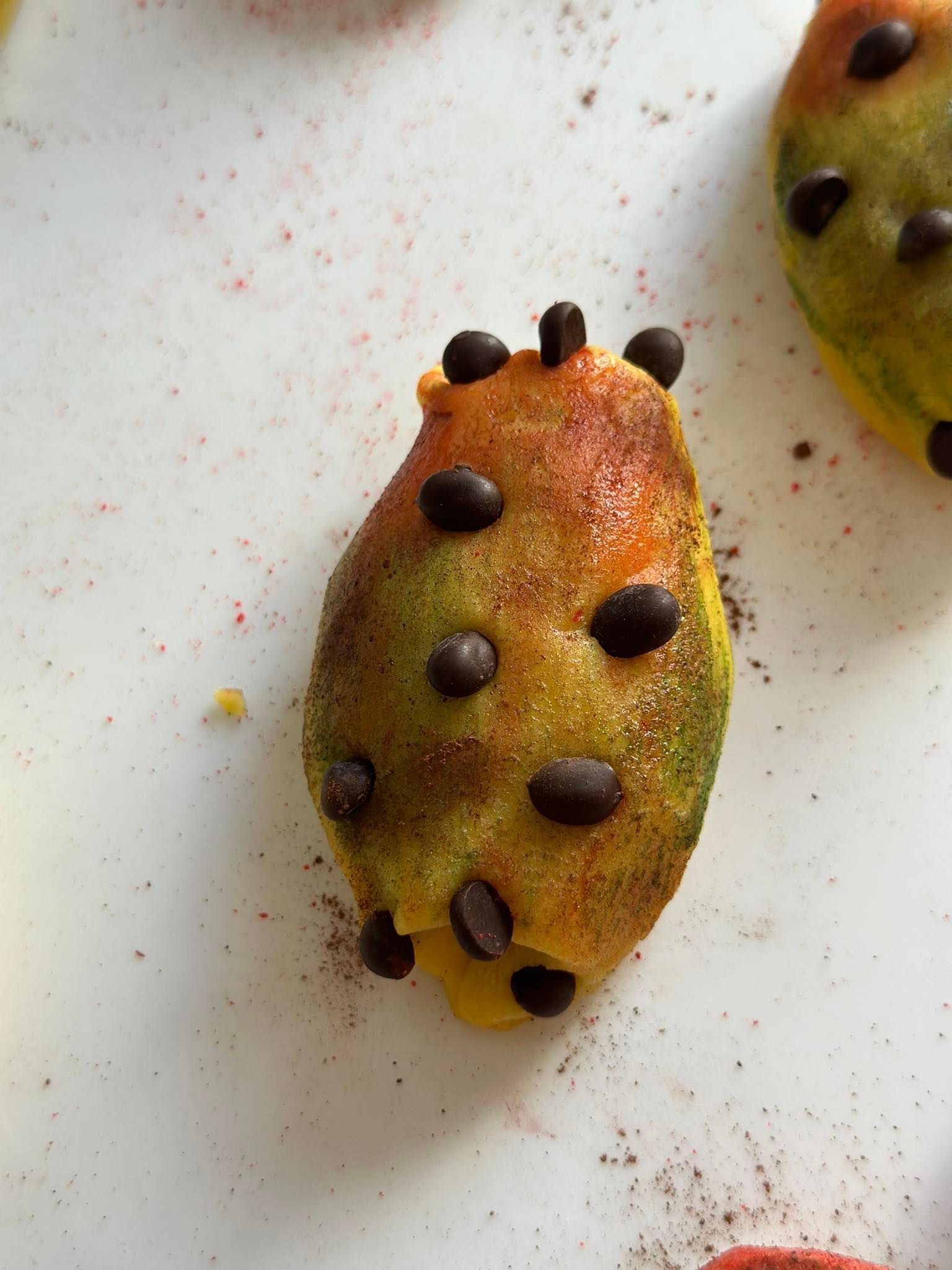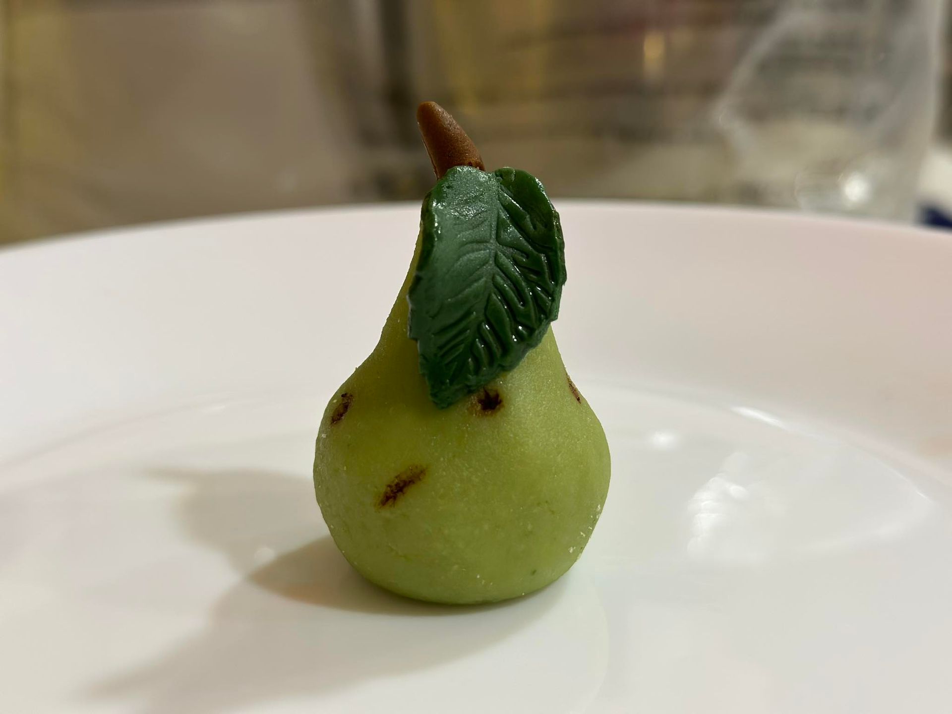Una pera de mazapan con todo sus detailles natural que vemos en una pera de verdad
